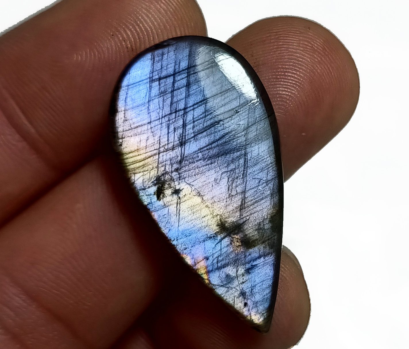 Cabujón natural, Labradorita. RECUERDA: todos los productos de la tienda son de origen natural. Los minerales no han sido alterados bajo ningún proceso para modificar sus características y/o propiedades.