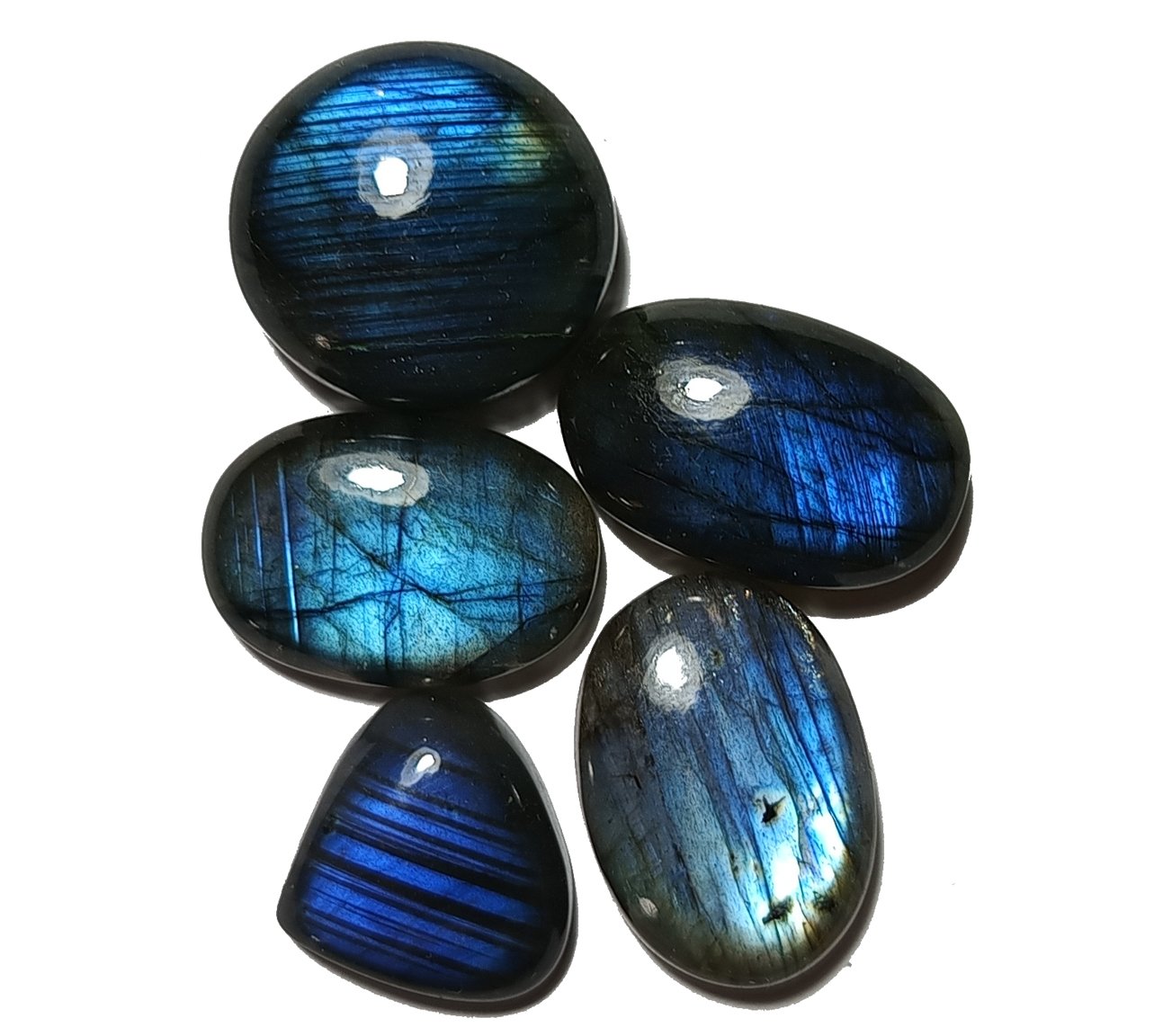 Lote conteniendo 5 cabujones, Labradorita Azul. RECUERDA: todos los productos de la tienda son de origen natural. Los minerales no han sido alterados bajo ningún proceso para modificar sus características y/o propiedades.