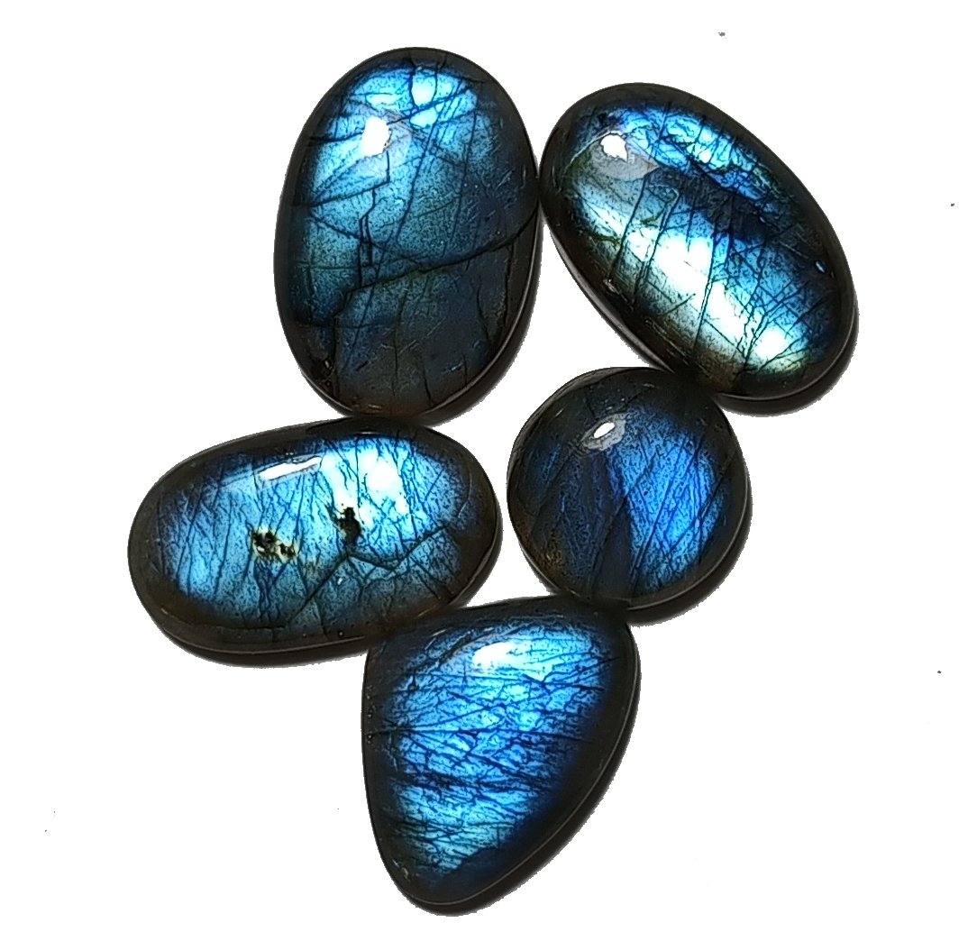 Lote conteniendo 5 cabujones, Labradorita Azul. RECUERDA: todos los productos de la tienda son de origen natural. Los minerales no han sido alterados bajo ningún proceso para modificar sus características y/o propiedades.