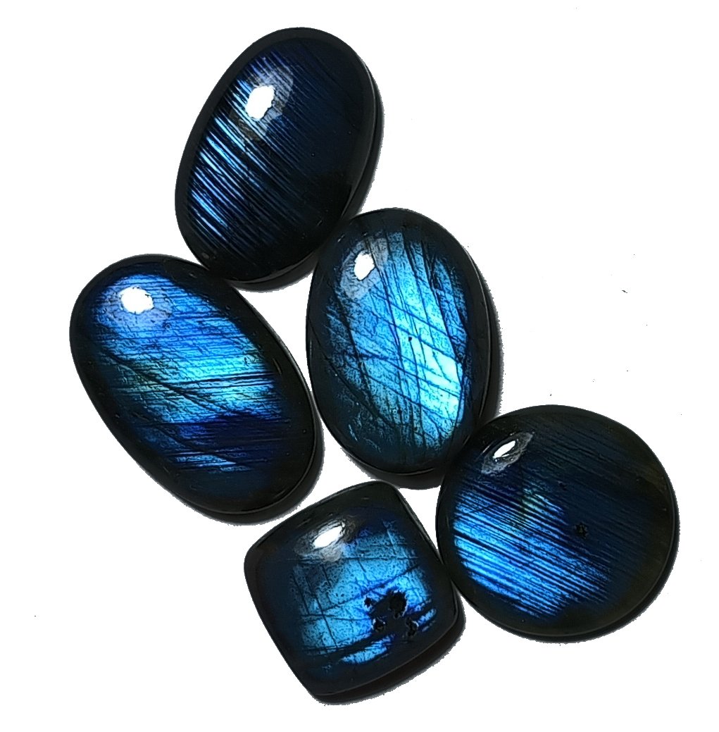 Lote conteniendo 5 cabujones, Labradorita Azul. RECUERDA: todos los productos de la tienda son de origen natural. Los minerales no han sido alterados bajo ningún proceso para modificar sus características y/o propiedades.