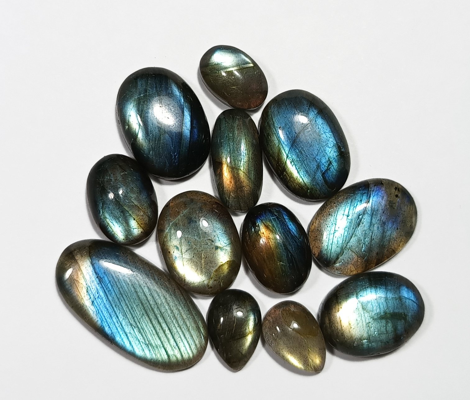 Lote conteniendo 12 gemas, Labradorita Multi. RECUERDA: todos los productos de la tienda son de origen natural. Los minerales no han sido alterados bajo ningún proceso para modificar sus características y/o propiedades.