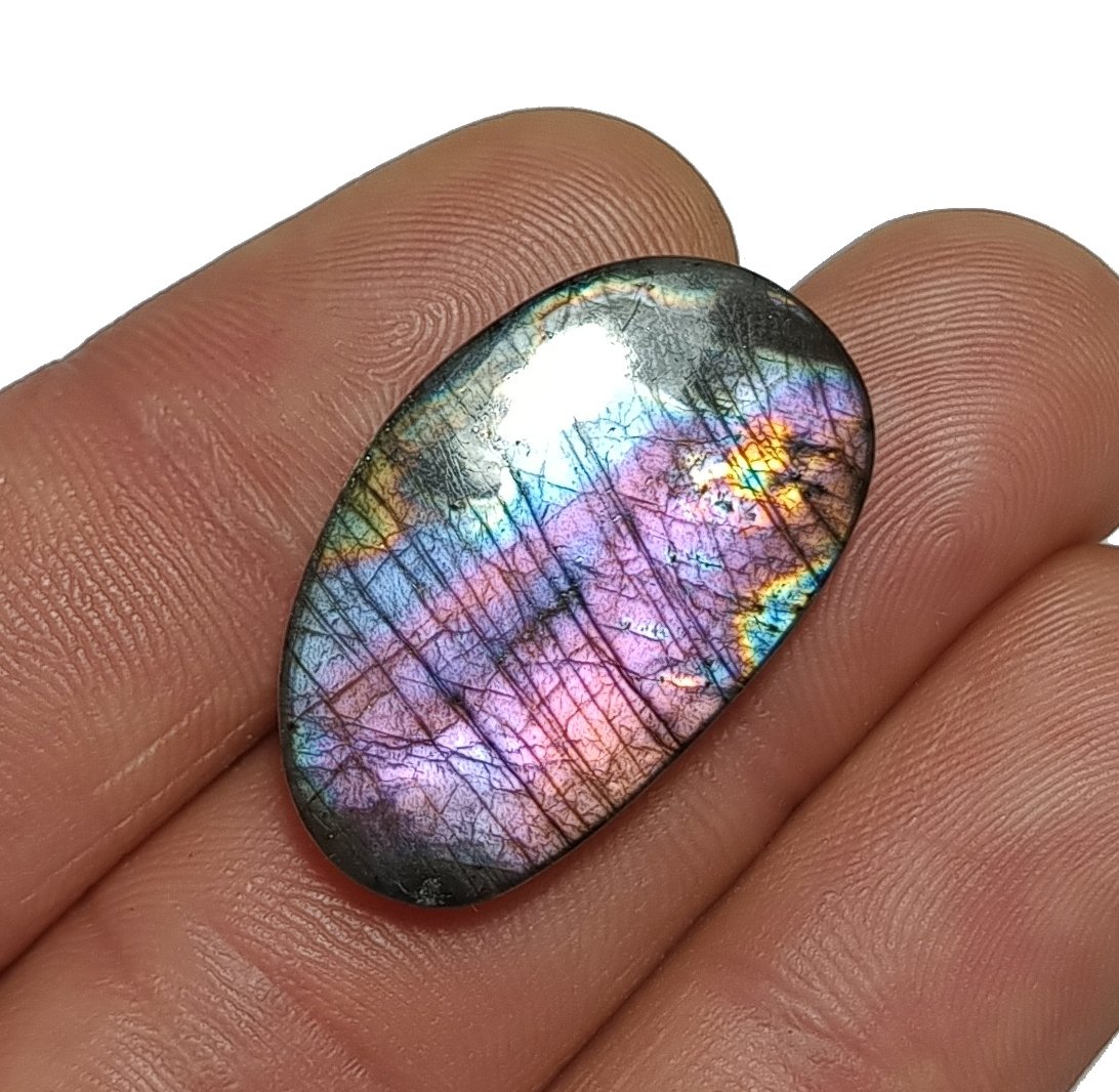 Cabujón natural, Labradorita Purpura. RECUERDA: todos los productos de la tienda son de origen natural. Los minerales no han sido alterados bajo ningún proceso para modificar sus características y/o propiedades.