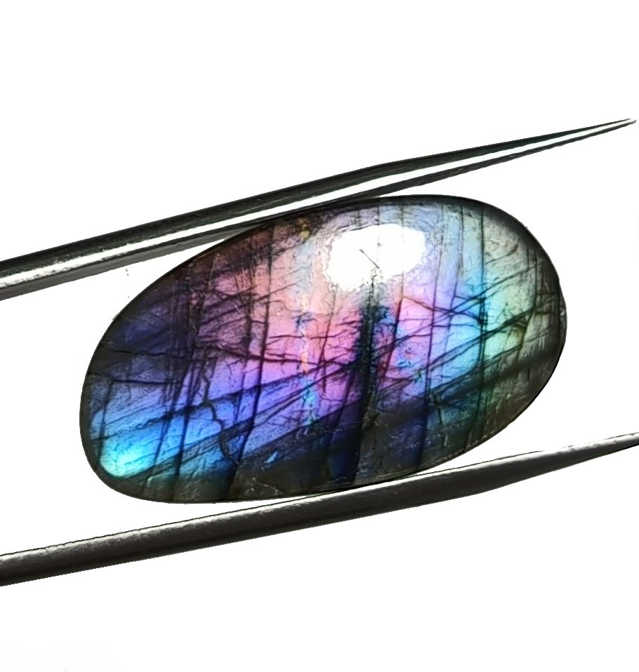 Cabujón natural, Labradorita Purpura. RECUERDA: todos los productos de la tienda son de origen natural. Los minerales no han sido alterados bajo ningún proceso para modificar sus características y/o propiedades.