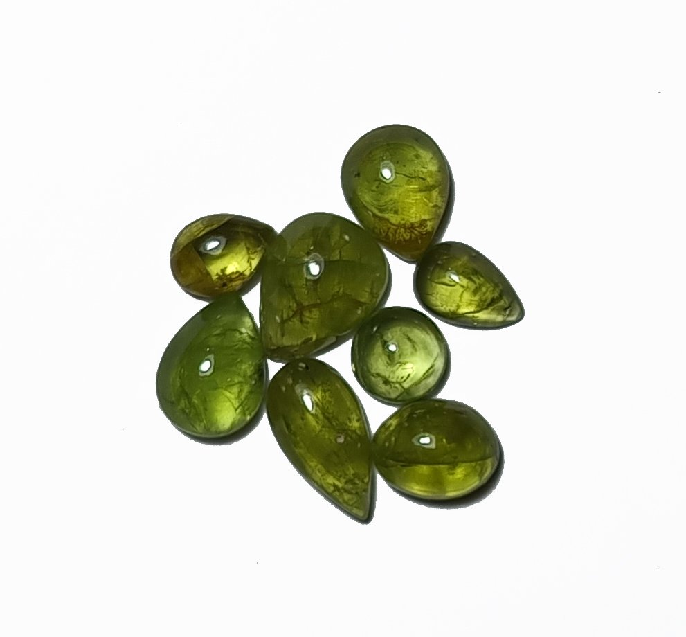 Lote conteniendo 8 cabujones, Peridoto. RECUERDA: todos los productos de la tienda son de origen natural. Los minerales no han sido alterados bajo ningún proceso para modificar sus características y/o propiedades.