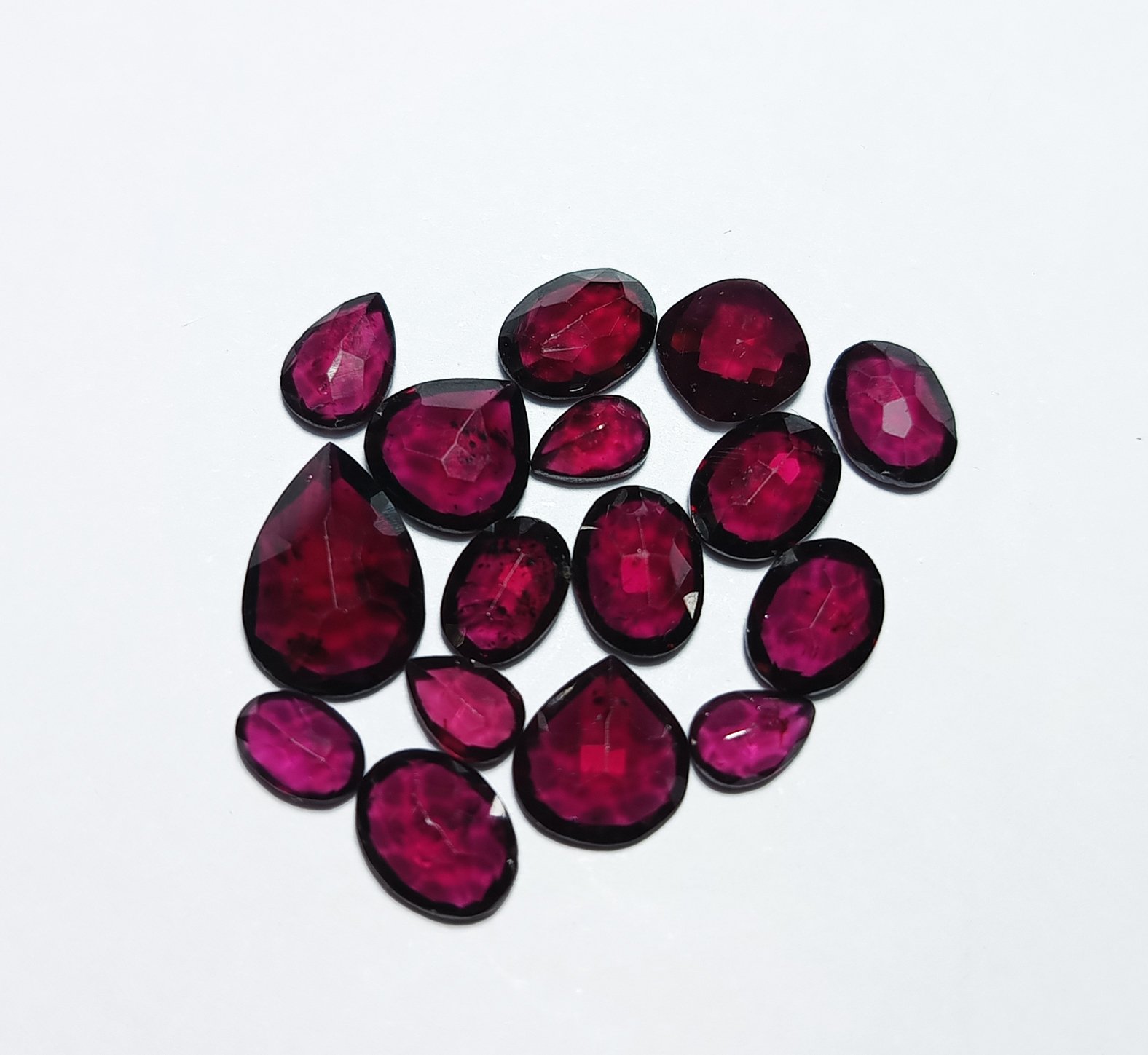 Lote conteniendo 16 cabujones facetados, Rodolita. RECUERDA: todos los productos de la tienda son de origen natural. Los minerales no han sido alterados bajo ningún proceso para modificar sus características y/o propiedades.