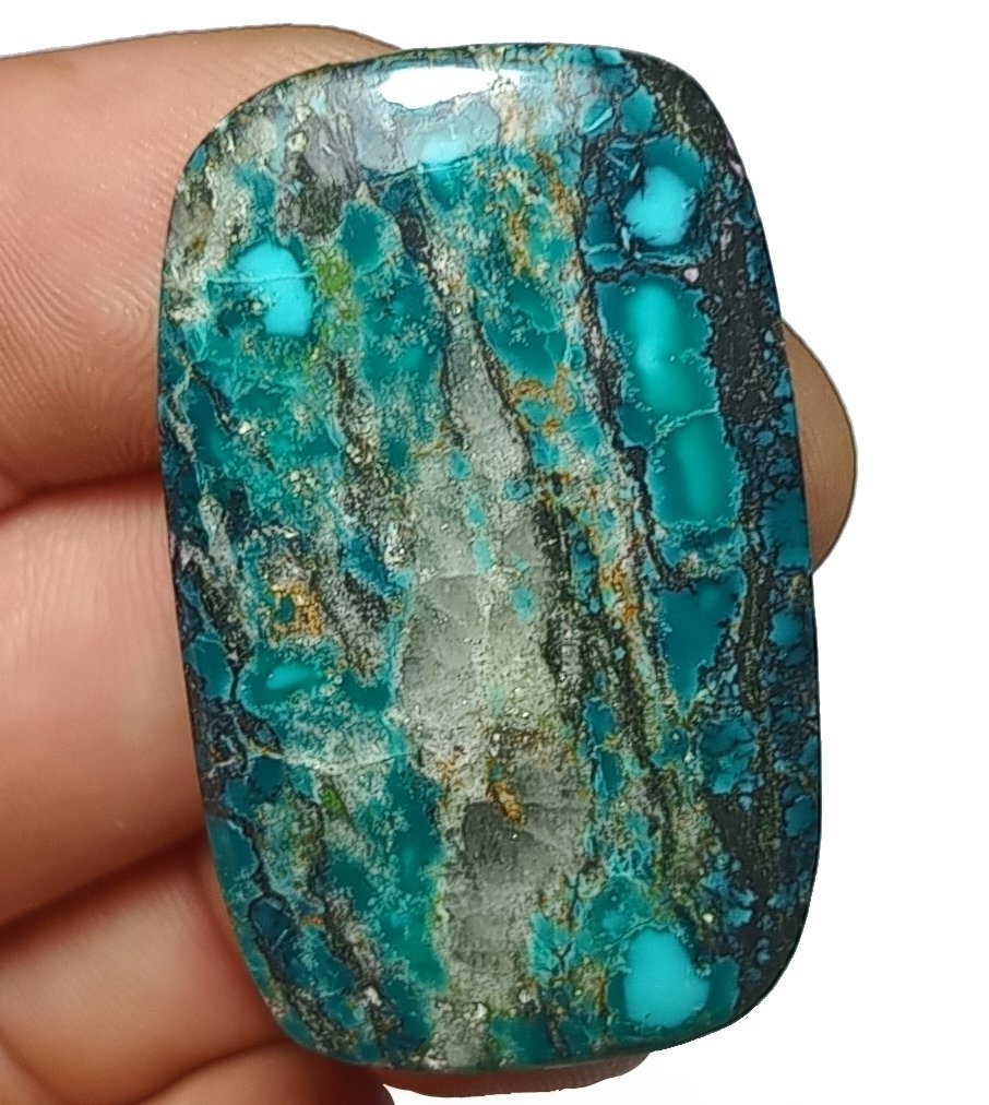 Cabujón natural Turquesa Tibetana. RECUERDA: todos los productos de la tienda son de origen natural. Los minerales no han sido alterados bajo ningún proceso para modificar sus características y/o propiedades.