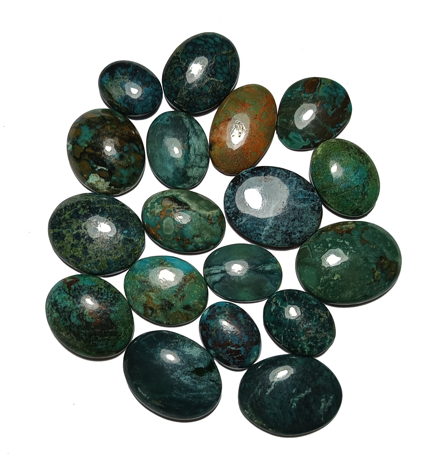 Lote conteniendo 17 cabujones, Turquesa Tibetana. RECUERDA: todos los productos de la tienda son de origen natural. Los minerales no han sido alterados bajo ningún proceso para modificar sus características y/o propiedades.